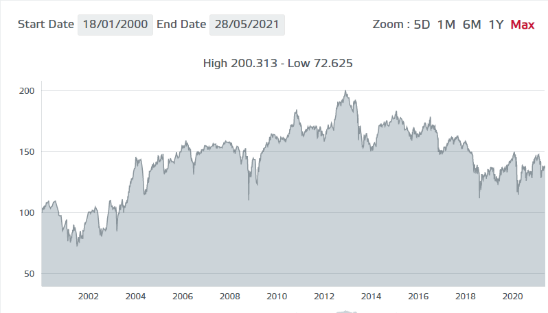 Örnek olarak US900123AL40 kodlu 2030 yılı vadeli eurobond’unun fiyat değişimi aşağıdaki grafikten görülebilir. Fiyatı en yüksek 200 seviyesine kadar çıkmış ve şu an 138 seviyelerinde seyrediyor. Aynı örnekten devam edersek, 2003 yılında 80 birim fiyattan bu eurobonddan 10000 adet almak için 8000 usd ödememiz gerekecekti. Zaman içinde aynı eurobond birim fiyatı hızla arttı ve 2006 yılında 150’ye kadar çıktı. Biz de vadesinin dolmasını beklemeden bu fiyattan satmaya karar verdik. Bu sefer 10000 adetin fiyatı 15000 usd’ye denk geliyor. 15000-8000 = 7000 usd ve artı olarak o zamana kadar alınan kupon faiz ödemeleri karımız oluyor. Tabi bunun tam tersi senaryo da gerçekleşebilir. Aynı eurobondu en yüksek 200 seviyesinden 10000 adet alsaydık ve 130 seviyelerinden vadesinin dolmasını beklemeden satmak zorunda kalsaydık 20000-13000 = 7000 usd zarar etmiş olacaktık.( o zamana kadar aldığımız kupon faizleri hariç). O nedenle eurobondun birim fiyatı 100’e yakın olduğu zamanlar alım yapmak daha uygun olacaktır. Tabi vadesinin dolacağı süreye kadar beklersek eurobond fiyatının değişimi nedeniyle herhangi bir kaybımız olmayacak.