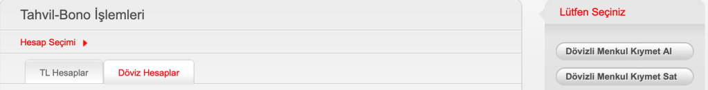 Akbank’ta ise Yatırım Hizmetleri menüsünden, tahvil bonuyu seçip, oradan eurobondu almak istediğiniz döviz hesabını seçtikten sonra dövizli menkul kıymet al diyerek, eurobond kod numarasına göre istediğiniz eurobondu seçip alım yapabilirsiniz.