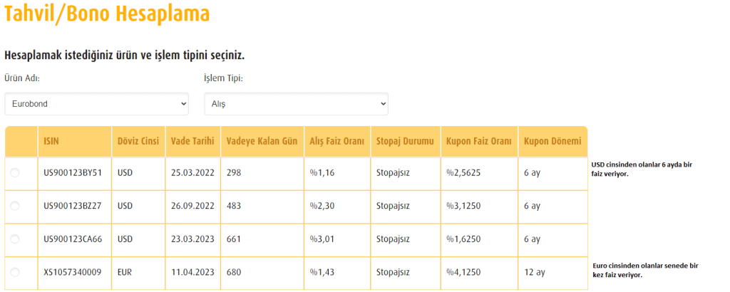 İş Bankası yatırım menüsünden eurobondu seçip, oradan vade sonuna göre istediğiniz eurobondu bulup işlem yapabilirsiniz.