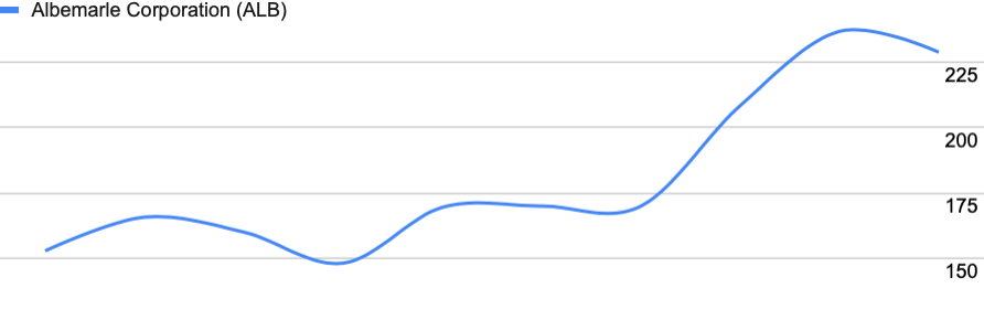Albemarle Corporation (ALB) ; Amerika merkezli şirket, dünyadaki en büyük 2. lityum üreticisi konumunda. 1887 de kağıt üreticisi olarak kurulmuş olup, bugün lityum pazarında %20 üzerinde paya sahipler. Lityum yanında kimya sektöründe birçok ürün üretiyorlar.